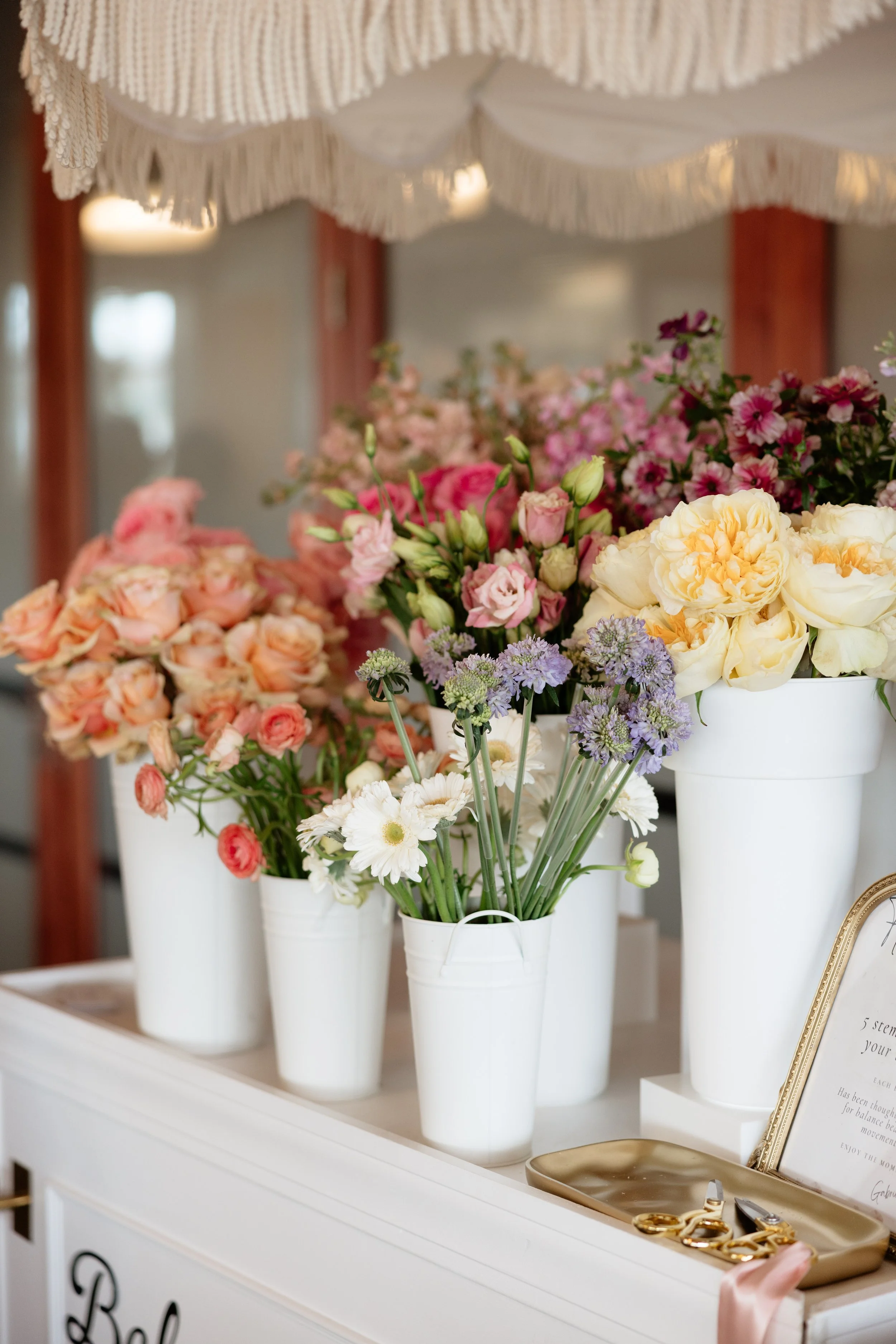Petite Bloom is a luxury flower bar experience designed for small events and gatherings with under 25 guests. Styled as a tabletop or compact floral stand, Mini Bloom offers the same curated stem count, premium floral sourcing, and intentional design as Bloom’s larger flower bar experiences, without the full cart set up.